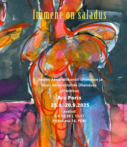 Eesti Akvarellistide Ühenduse liikmed osalevad Soome Akvarellikunsti Ühenduse kutsel rahvusvahelisel ühisnäitusel Inimene on saladus (Ihminen on salaisuus), mis toimub 25. augustist 20. septembrini 2025 Soomes Poris, Ars Pori galeriis (Yrjönkatu 14).
